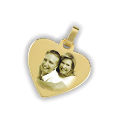 Fotogravuranhänger lieferbar in Stahl weiß, Stahl gelb, Stahl rosé, 333 Gelbgold, 585 Gelbgold und 925 Silber (ca. 20×25 mm)